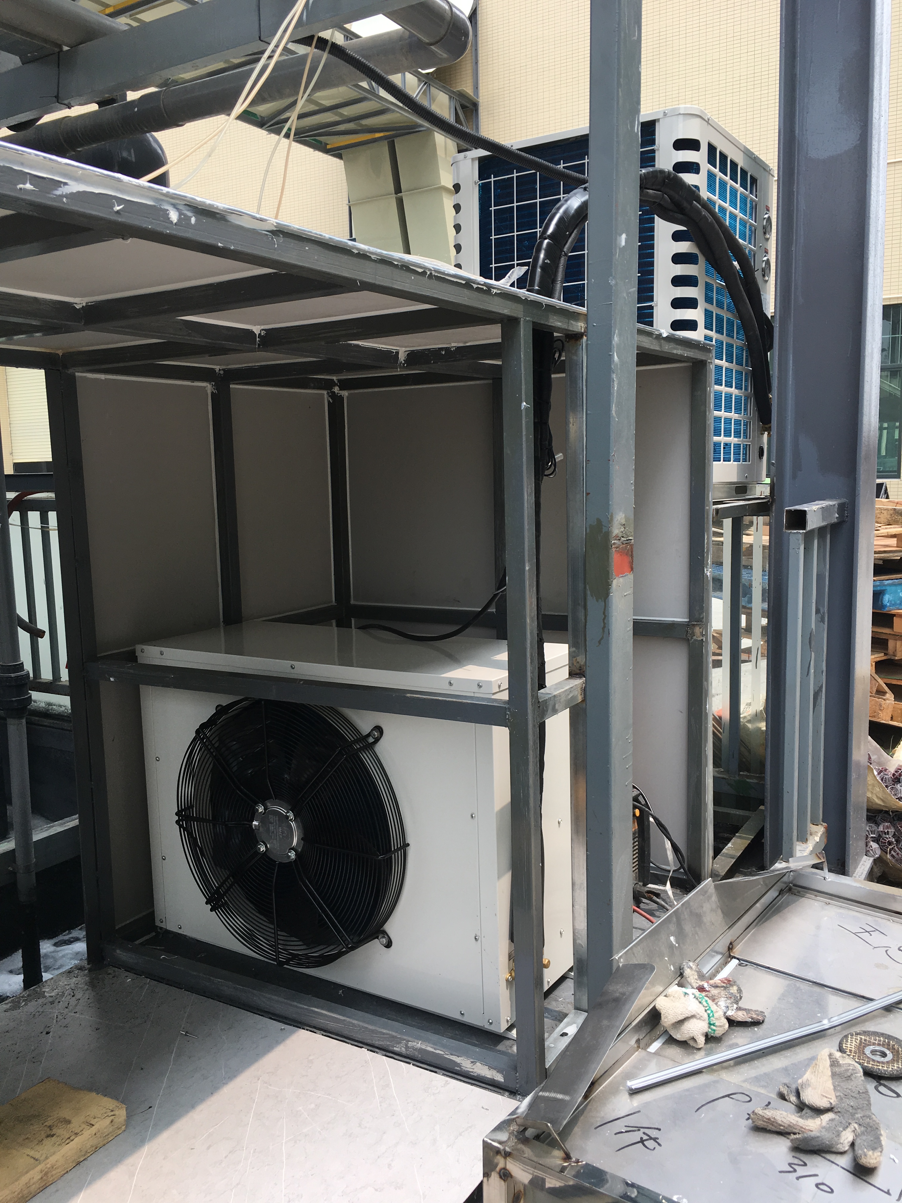3匹分体式高温热泵烘干机安装于广东省清远市清新区金钟汽车配件厂,该烘干系统主要对汽车配件生产过程产生的废渣进行脱水处理,减轻废渣重量,降低废渣处理费用,实现企业经济效益最大化。